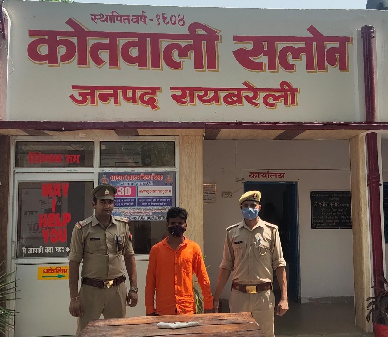 अपराध एवं अपराधियों के विरुद्ध कृत कार्यवाही के अन्तर्गत आज दिनांक 15 मई 2022 को थाना सलोन पुलिस टीम द्वारा संदिग्ध व्यक्ति चेकिंग/क्षेत्र भ्रमण के दौरान मुखविरखास की सूचना पर अभियुक्त अजय कुमार पटेल पुत्र रामभवन पटेल निवासी ग्राम मंशा का पुरवा मजरे दुबहन थाना सलोन रायबरेली को 01 अदद तमन्चा 01 अदद जिन्दा कारतूस 315 बोर के साथ थाना क्षेत्र के साम्राट ढाबा के सामने से नियमानुसार गिरफ्तार किया गया है । जिसके विरुद्ध थाना सलोन पर मुकदमा अपराध संख्या-208/2022 धारा-3/25 शस्त्र अधिनियम के अन्तर्गत अभियोग पंजीकृत कर विधिक कार्यवाही करते हुये न्यायिक अभिरक्षा में भेजा गया है ।नाम पता गिरफ्तार अभियुक्त-अजय कुमार पटेल पुत्र रामभवन पटेल निवासी ग्राम मंशा का पुरवा मजरे दुबहन थाना सलोन रायबरेली ।